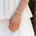 This bracelet is the match to our Dorothea Pearl Necklace.