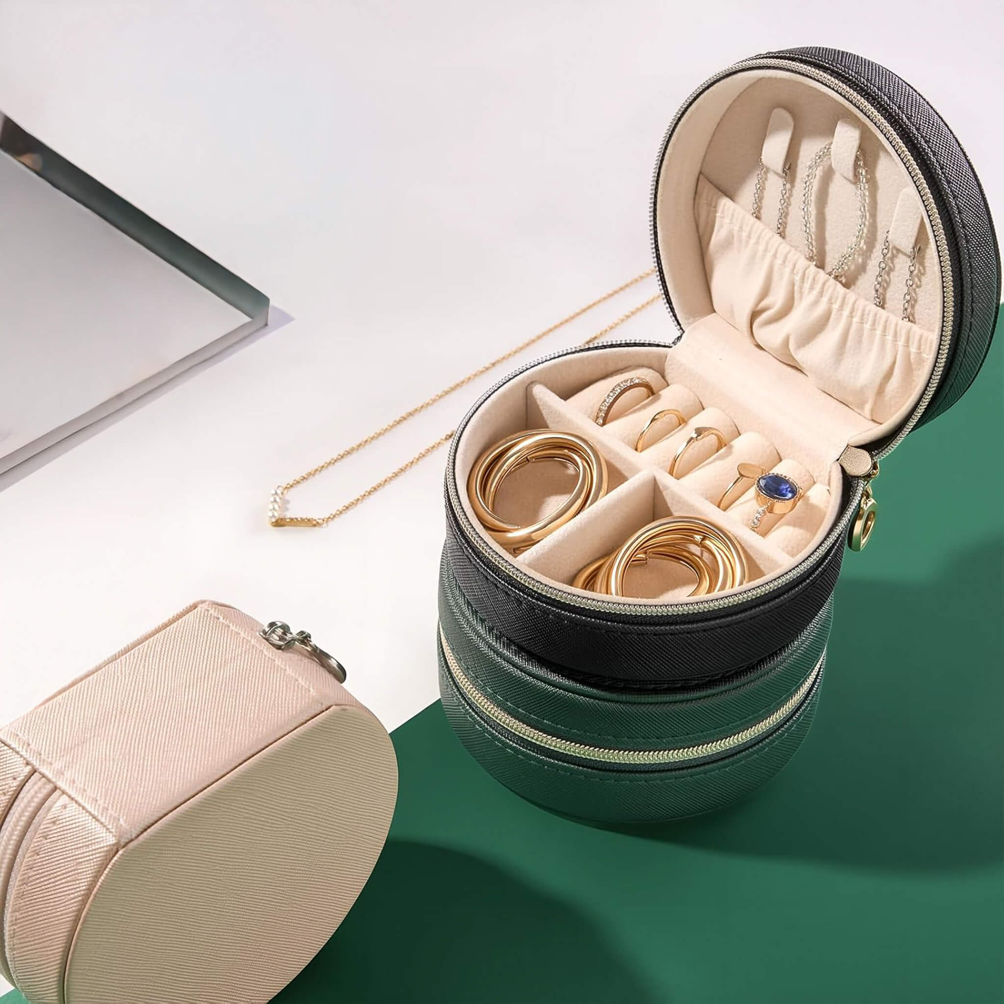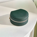 Keep your treasured pieces safe and stylish with this compact travel companion. Perfect for tossing into your bag before heading to the office, gym, or weekend getaway, The Mini Vault keeps your jewelry organized and protected wherever life takes you. Made from eco-conscious plant-fiber vegan leather that feels as luxe as the real thing, it's the guilt-free way to carry your sparkle. Choose from Champagne, Emerald, or Black to match your vibe.